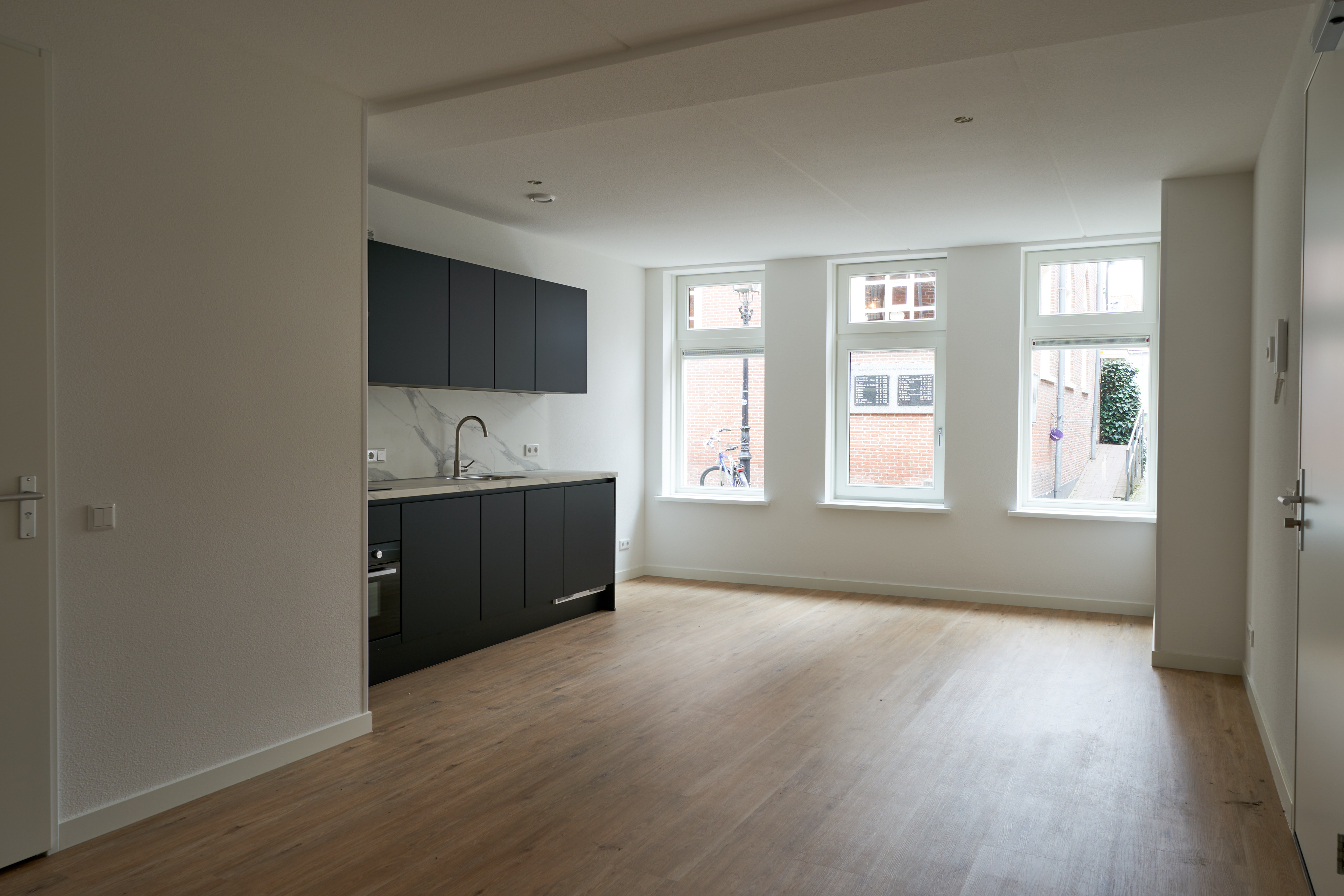 De studio is gelegen in een statig herenhuis. Het herenhuis is volledig nieuwgebouwd en voorzien van alle hedendaagse moderne eisen. Zo is het pand volledig geïsoleerd en voorzien van een warmtepomp en zonnepanelen, tevens is het pand gasloos!